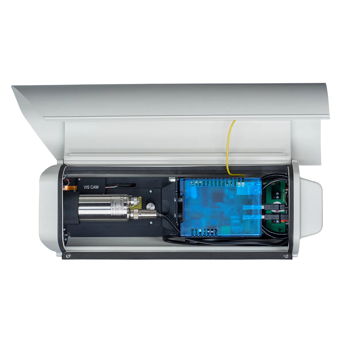 The Xi 400CM Package meets the critical need for continuous monitoring in industrial outdoor settings. This comprehensive package incorporates all necessary components to effectively monitor equipment and fire hazards, offering early warnings when equipment overheats or when ignition temperatures signal the onset of a fire. The package features an infrared camera, an outdoor enclosure equipped with a fan and heating element, a front window air purge, a high-definition video camera, and a USB Gigabit Server for long-distance video transmission.
